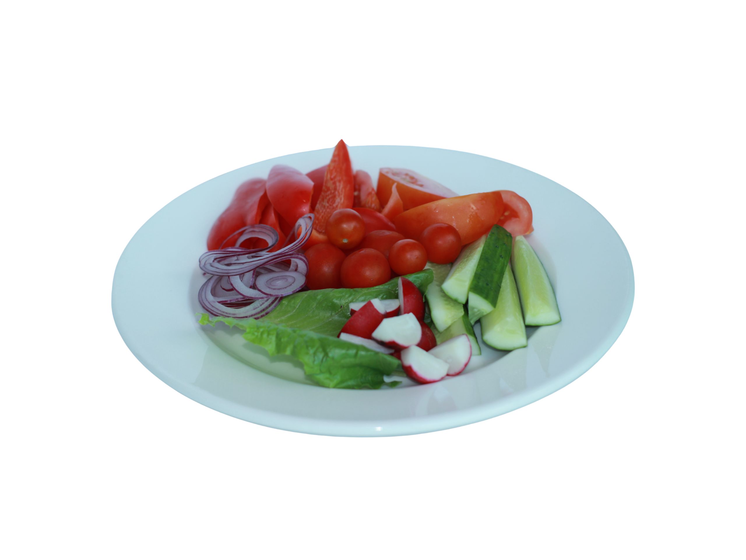 Свежие черри, огурцы,сладкий перец, редис, салат и красный лук (410г)